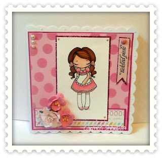 This is my last week as a guest designer for the Papertake Weekly Challenge. This weeks challenge was a Pretty Pink Challenge. I have used a Greeting Farm Anya from the Dress up Set. The sentiment is Stampin Up. My papers are Doodlebug's, DCWV stack and pink glitter paper (my Fav!) I have used lots of pearls and stickles over the image and flowers from my stash. Thanks for looking...